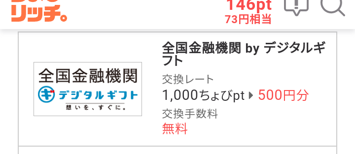 ちょびリッチの交換先にデジタルギフト出現
