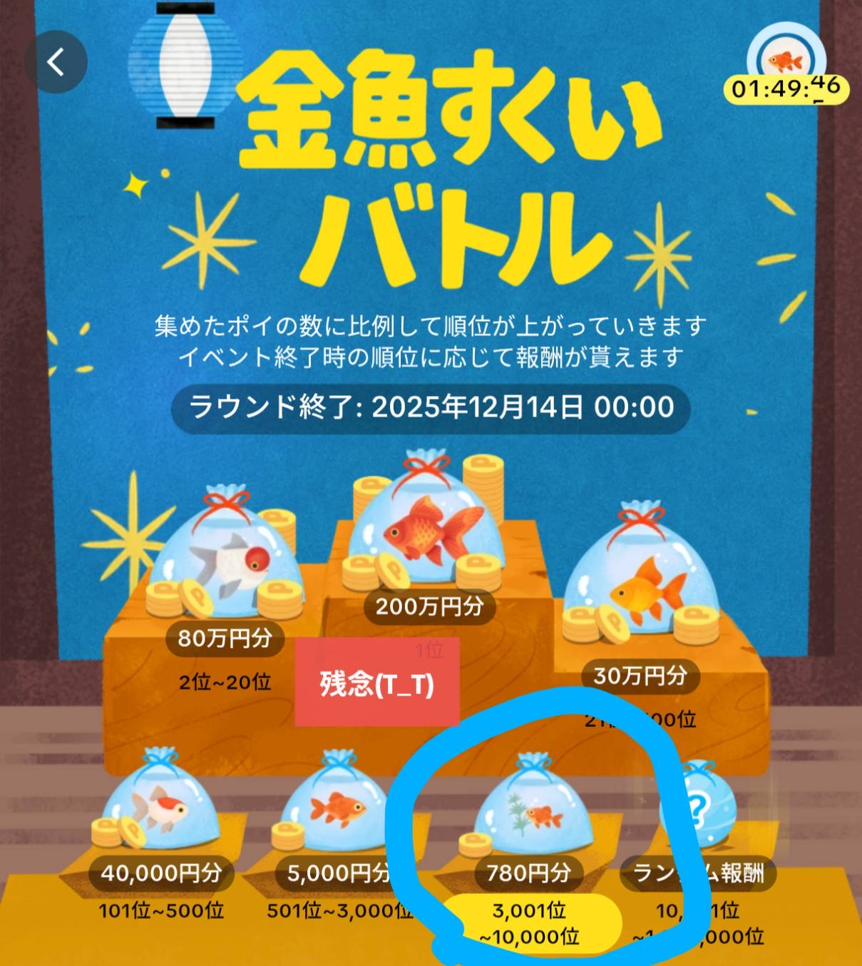 上位の報酬はまだ高いですが、自分が狙える1万位の報酬は大幅に減ってしまいました。