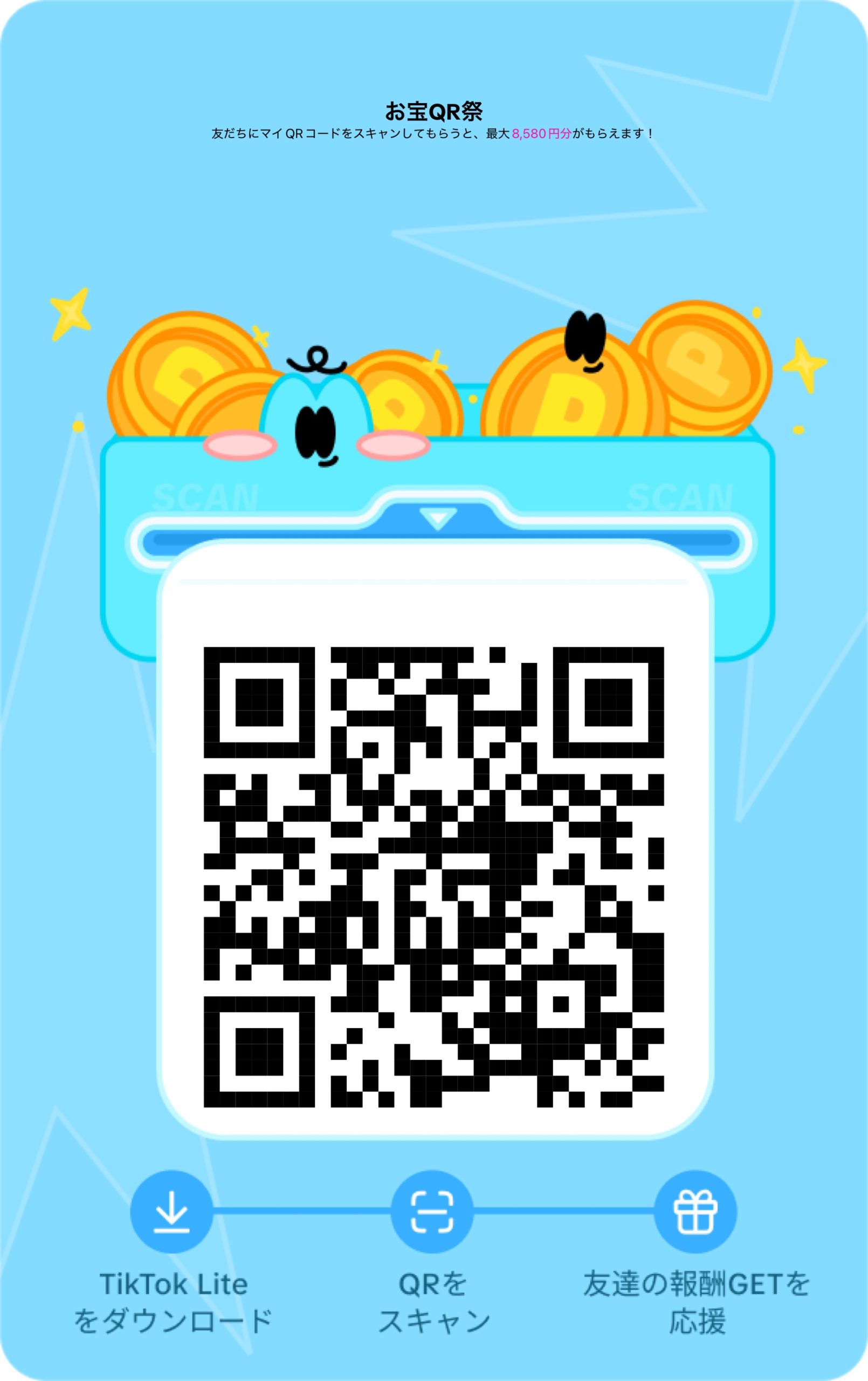 ポイ活QRコードを読み取ってもらってtiktokLiteを起動してもらえばポイントが貰える仕組みのQRコード祭、実は紹介報酬が抜群に良いのですよね!!